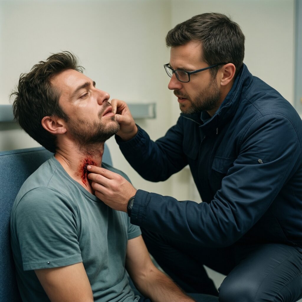 До приезда скорой ваша задача - не лечить, а сохранить жизнь: обеспечить безопасность, быстро оценить сознание и дыхание, вызвать 112/103, остановить опасное кровотечение, начать СЛР…
